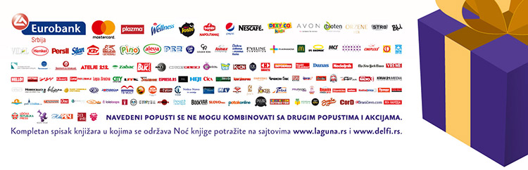 Za sve ljubitelje pisane reči koji su propustili Noć knjige knjižarski lanac Delfi će do 20. decembra obezbediti popust od 20% na knjige domaćih izdavača: Agape knjiga, Agora, Akia Mali Princ, Arete, Arhipelag, Clio, Čarobna knjiga, Darkwood, Data status, Dereta, Dibidus, Draslar, Evro Book, Filip Višnjić, Finesa, Geopoetika, Globosino, Heliks, Sezam Book, Strahor, JRJ, Karupović, Kontrast izdavaštvo, Kosmos izdavaštvo, Kreativni centar, Leo Commerce, Lom, Makart (Booka i Paladin), Miba Books, NID Kompanija Novosti, Orfelin izdavaštvo, Partenon, Pčelica izdavaštvo, Plato izdavaštvo, Propolis Books, Psihopolis, Samizdat, Službeni glasnik, Solaris, Srpska reč, Sun promo, Tanesi, Urban Reads, Valera, Verba, Vukotić Media, Vulkan izdavaštvo, Zadužbina Vladete Jerotića.