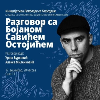 U sredu 17. decembra u 20 sati, u Sali 11 Filološkog fakulteta u Beogradu, u okviru ciklusa „Razgovori s Katedrom“ Katedre za srpsku književnost sa južnoslovenskim književnostima, gostovaće pisac Bojan Savić Ostojić, povodom romana „Lusi“.