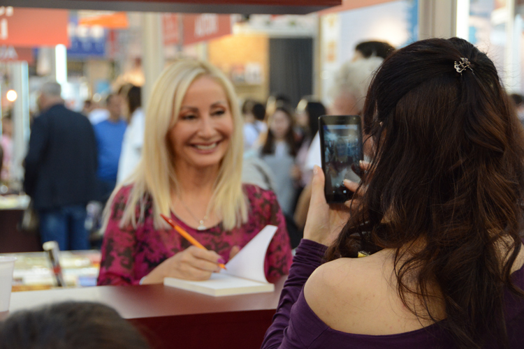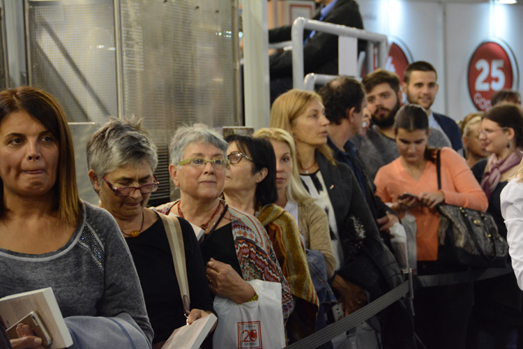 Mirjana Bobić Mojsilović se i danas družila sa svojim čitateljkama na Sajmu knjiga punih sat vremena, počev od 17 časova. Red se formirao i pre zakazanog termina, a poklonice njene književnosti su strpljivo čekale da proćaskaju sa Mirjanom i razmene utiske, mahom o njenom poslednjem romanu „Muška azbuka“.