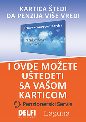 Izdavačka kuća Laguna je započela saradnju sa Penzionerskim servisom i svim vlasnicima Penzionerske popust kartice nudi popust od čak 20% na svoja izdanja.