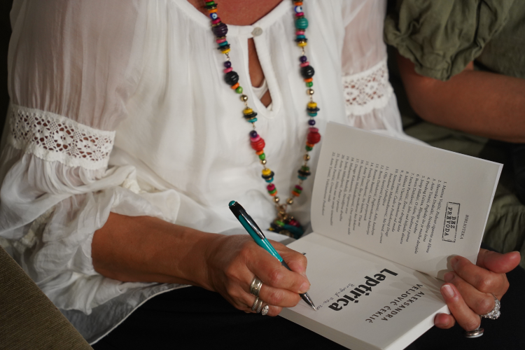 Aleksandre Veljović Ćeklić, autorke koja dolazi izdaleka (živi na relaciji Meksiko–Kanada), ali piše o temama koje su nam bliske, jer se tiču našeg podneblja. Pored autorke, na promociji su govorile i Isidora Đolović, profesorka književnosti, i Ivana Misirlić, urednica u Laguni.