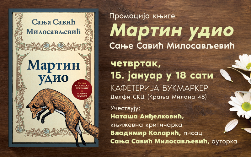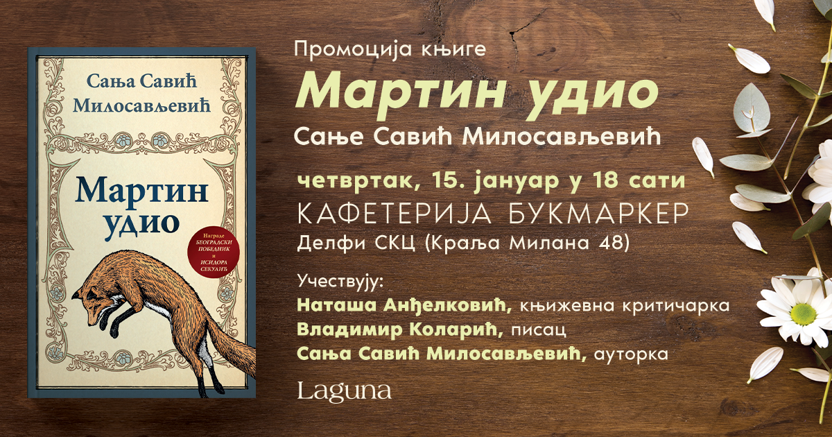 Laguna - Bukmarker - Promocija knjige „Martin udio“ Sanje Savić Milosavljević 15. januara u knjižari Delfi SKC - Knjige o kojima se priča