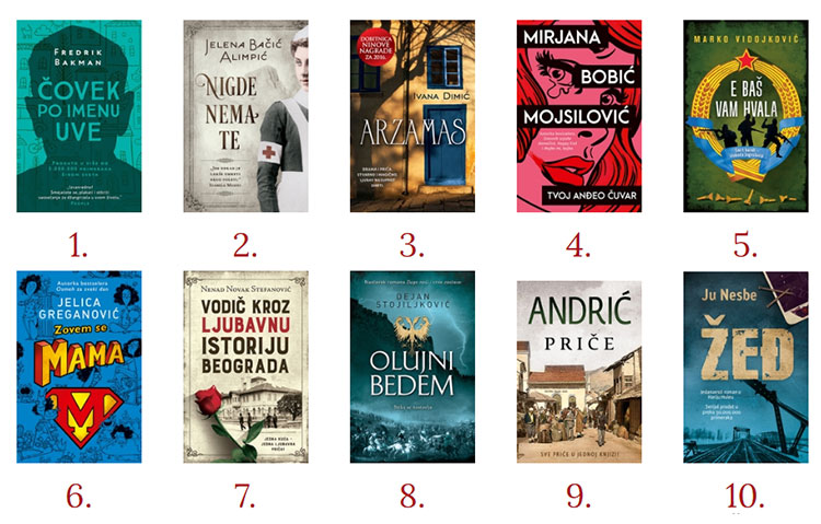 Svi smo bili veoma nestrpljivi da vidimo godišnju listu 20 najprodavanijih naslova i da saznamo šta je to što vam se najviše dopalo iz naše produkcije. Iznenađenje i nije bilo veliko kada smo videli da je „Čovek po imenu Uve“ apsolutni pobednik jer je mesecima bio na tronu top-liste. Za njim slede domaći autori, drugo i treće mesto zauzimaju Jelena Bačić Alimpić i Ivana Dimić, a za njima slede Mirjana Bobić Mojsilović sa čak 2 romana na listi, i roman Marka Vidojkovića, koji se pojavio ove jeseni.