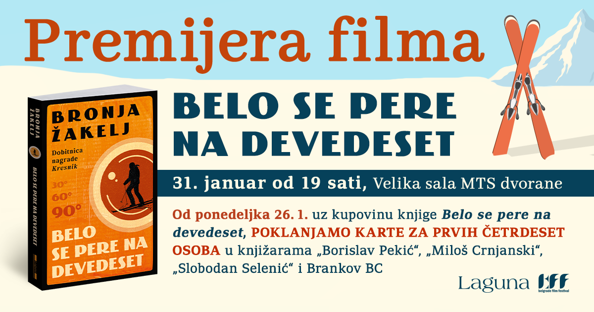 Laguna - Bukmarker - Vodimo vas na premijeru filma „Belo se pere na devedeset“, snimljenom prema istoimenom bestseler romanu Bronje Žakelj - Knjige o kojima se priča